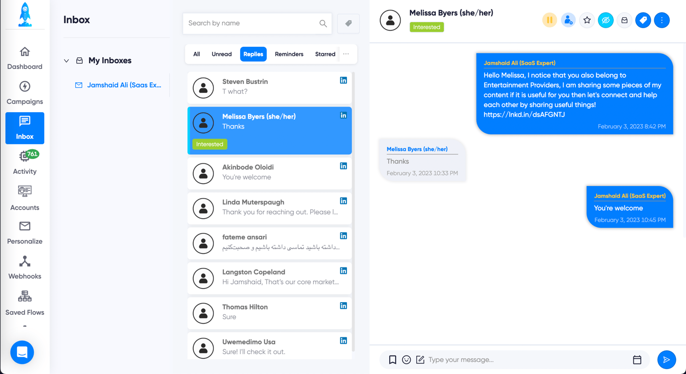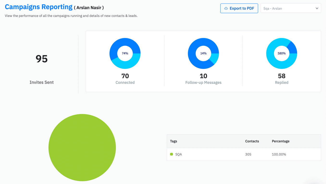 Here is a detailed snapshot of all your campaigns running, new leads, and statistics to help you evaluate the performance of your campaigns. Figure out what's working and make even smarter outreach decisions.